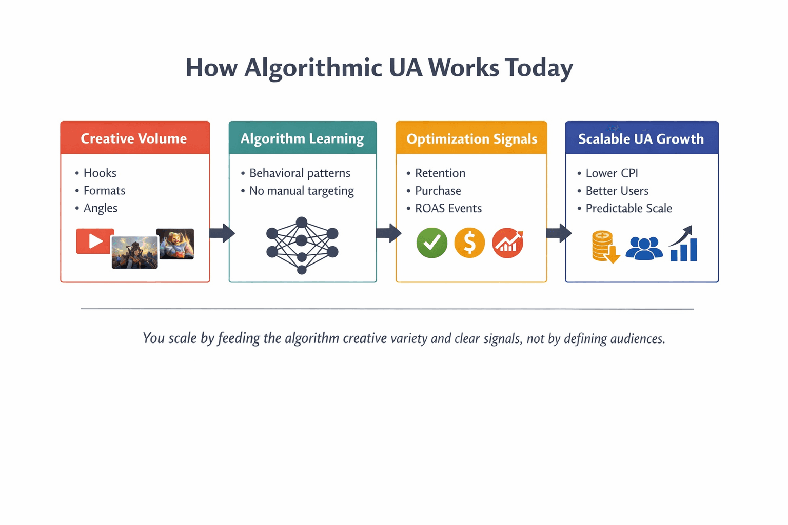 The Algorithmic UA Playbook: How to Scale Mobile Games Without Audience Targeting
