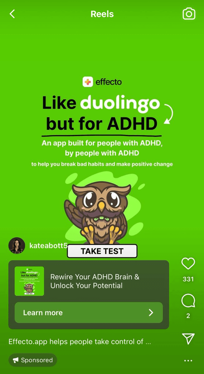 Feeds train users to recognize ads instantly. Analogue visuals disrupt that recognition loop for audiences. The person pauses because the brain can’t immediately classify what it’s seeing. Bonus points if the content is natively adapted to the feed the user sees.
